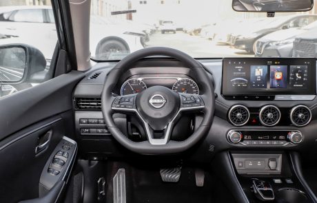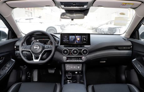 نیسان سیلفی مکس ادیشن با جلوپنجره شاخص V-Motion نیسان شناخته میشود. این جلوپنجره با خطوط تیز و هماهنگ، ظاهری اسپرت و تهاجمی به خودرو میدهد. چراغهای LED باریک، دیلایتهای زیبا و سپر اصلاحشده باعث شده این نسخه نسبت به مدلهای پایه لوکستر و مدرنتر به نظر برسد.